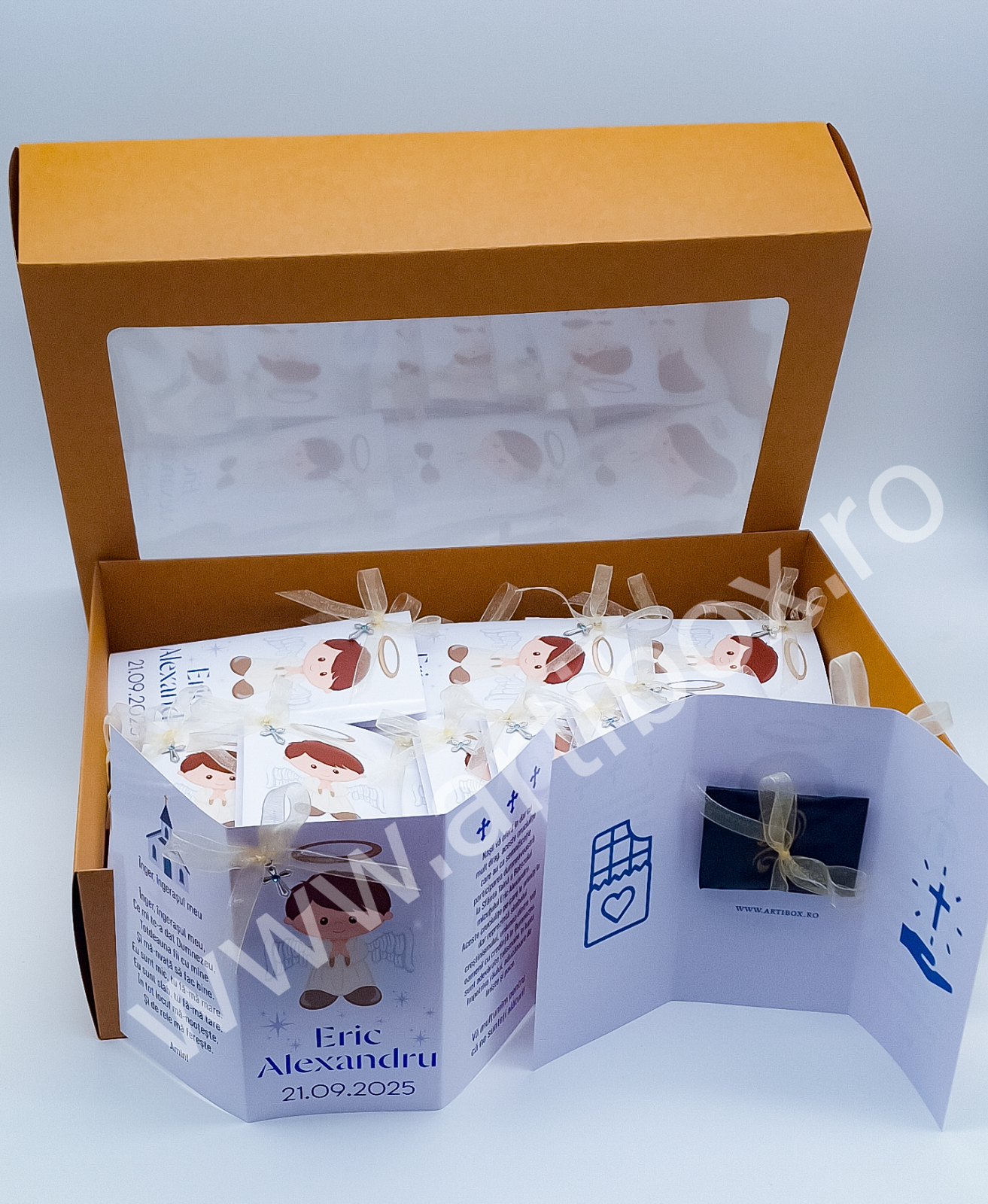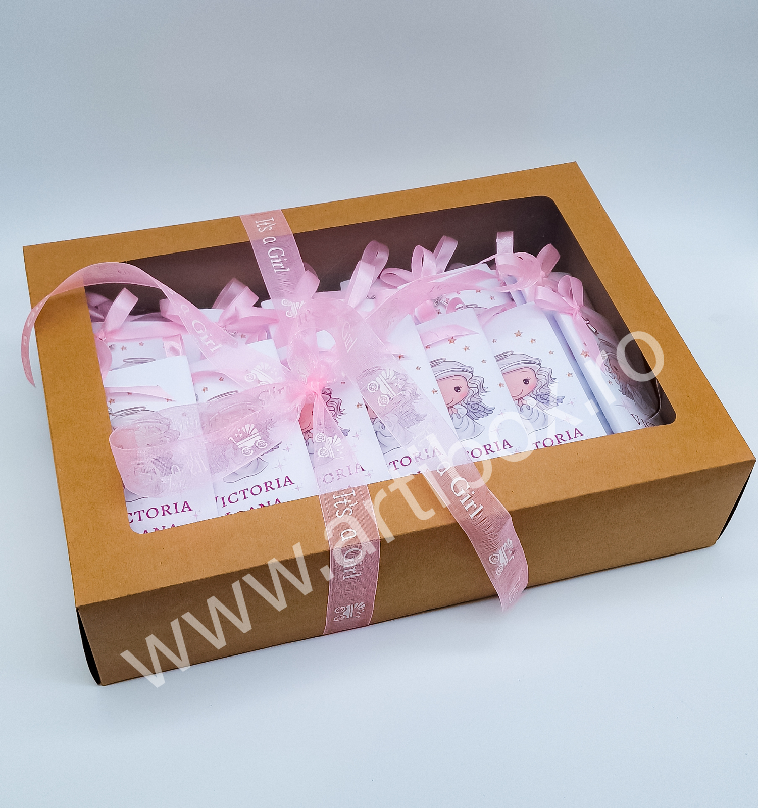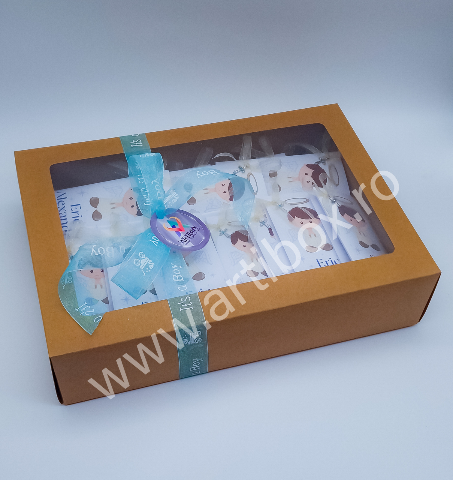 Cutie pentru cruciulitele model felicitare cu fundita personalizata It's a boy sau It's a girl!