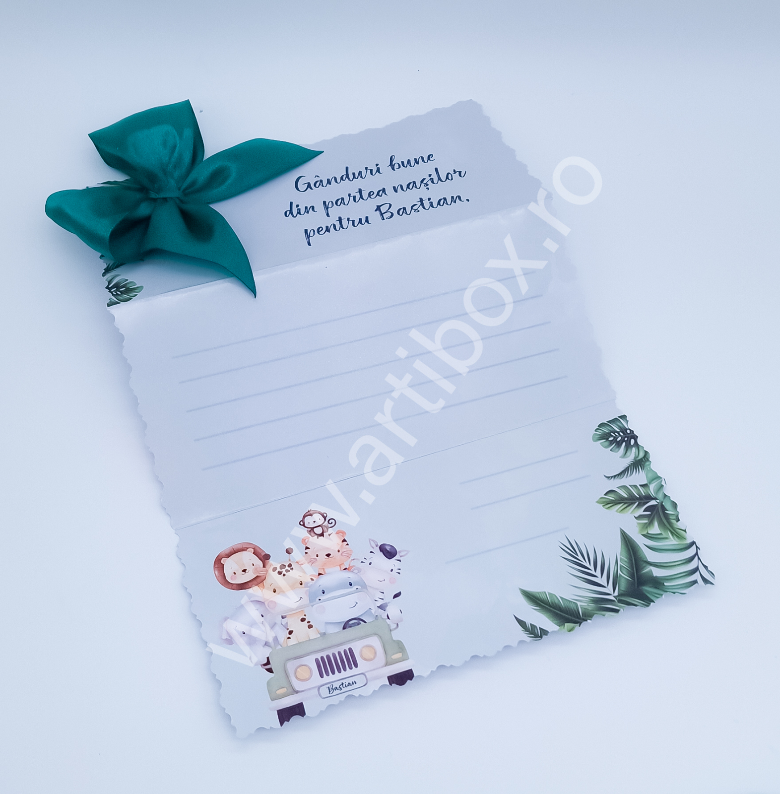 Felicitare Handmade cu funda verde si text personalizat, Tematica Safari