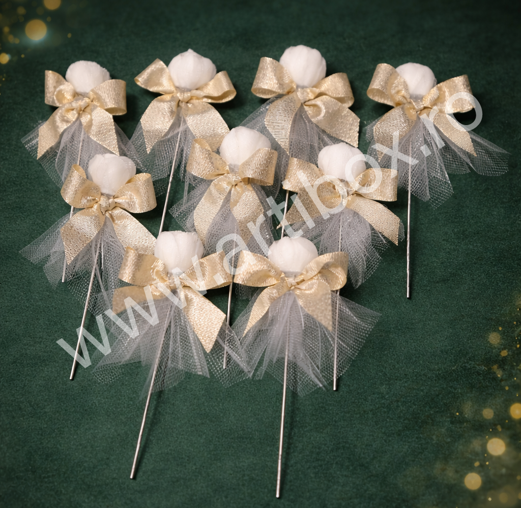 Materiale folosite: Tiul, fundita culoare la alegere, cartonas personalizat cu text.