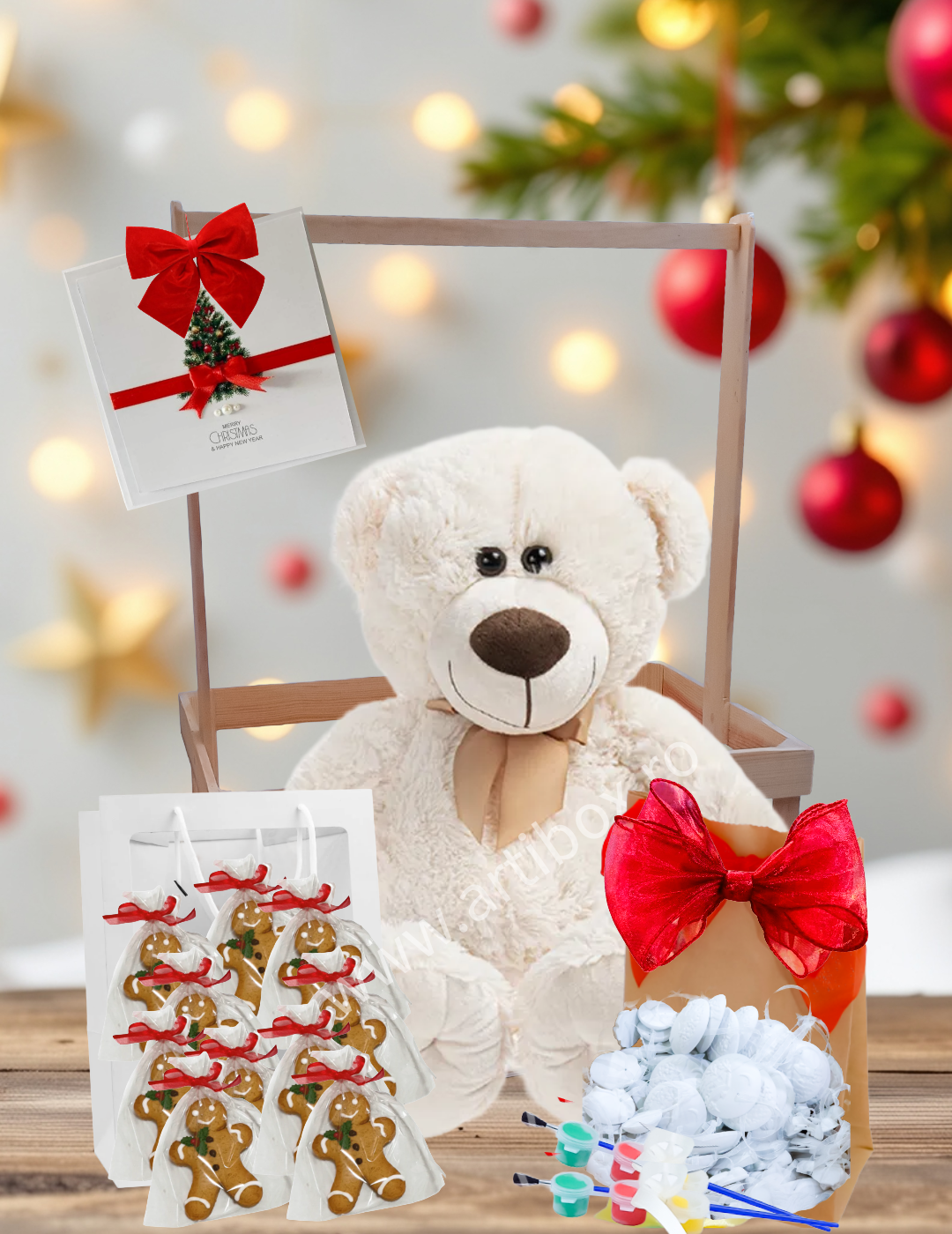 Cadou Mos Craciun - Set pictura globuri, Ursulet de plus si Turta dulce traditionala